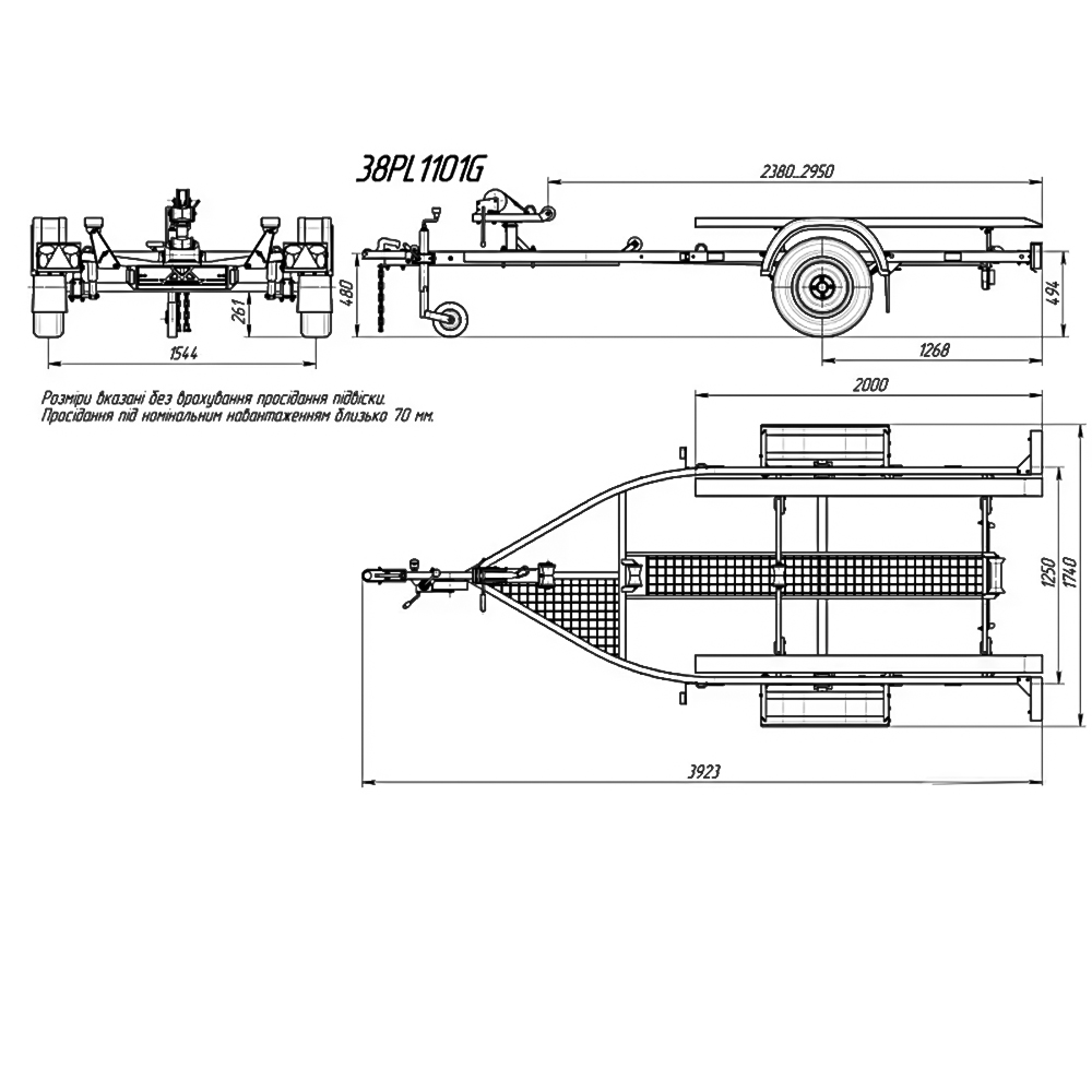 | Довжина причепа загальна | 3920 мм |