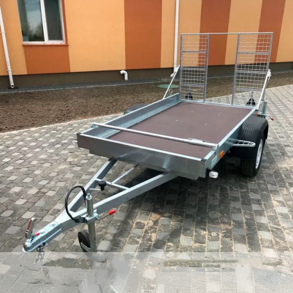 | Комплектація причепа | Колеса,Дві опорні стійки,Кріплення запасного колеса,Опорне колесо,Заїзний трап |