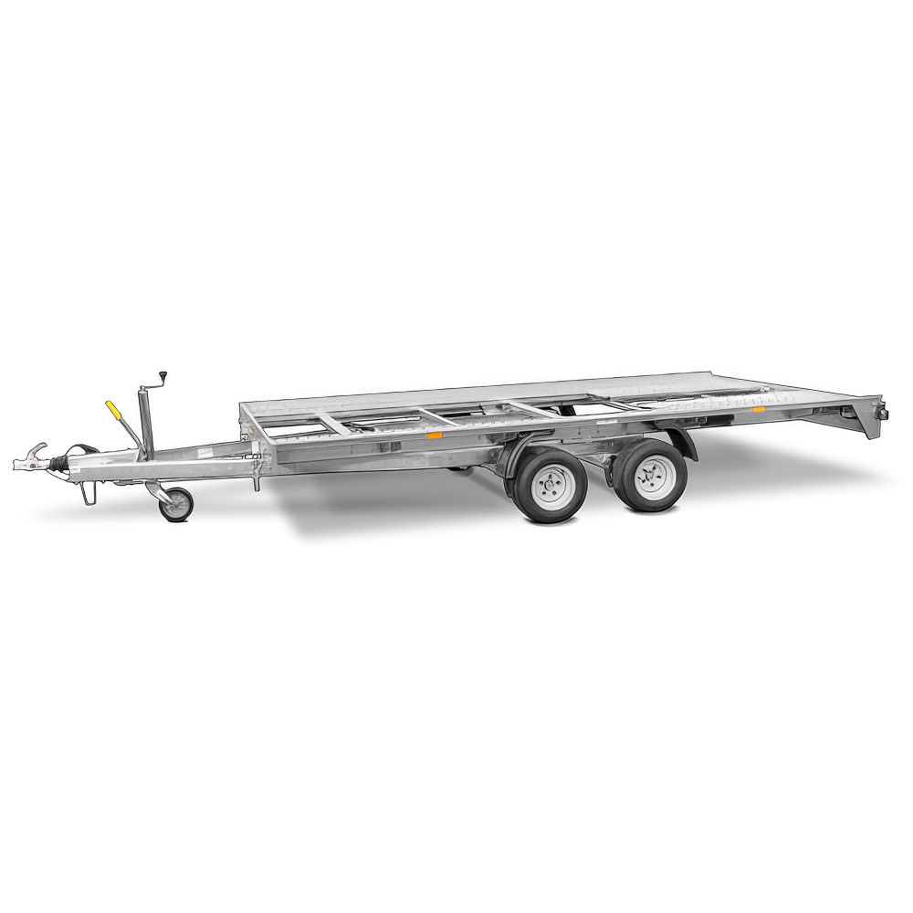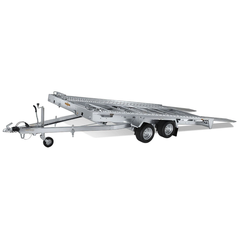 Платформу можна механічно нахилити за допомогою амортизаторів, а заїзд здійснюється по рифлених сталевих вантажних пандусах. Додаткова тросова лебідка та гідравлічний нахил ще більше спрощують завантаження. Чотири варіанти виконання з корисним навантаженням до 2 тонн і різними розмірами дозволяють підібрати індивідуальну та доступну модель.