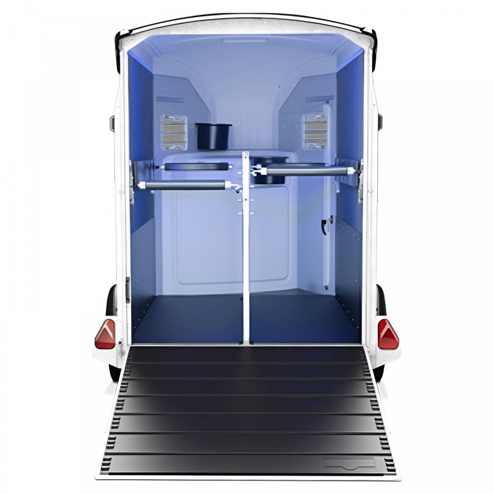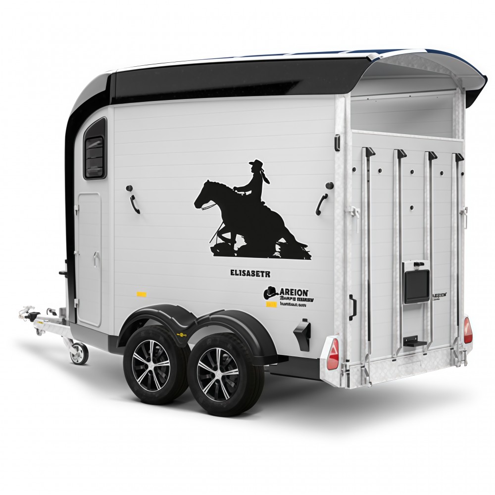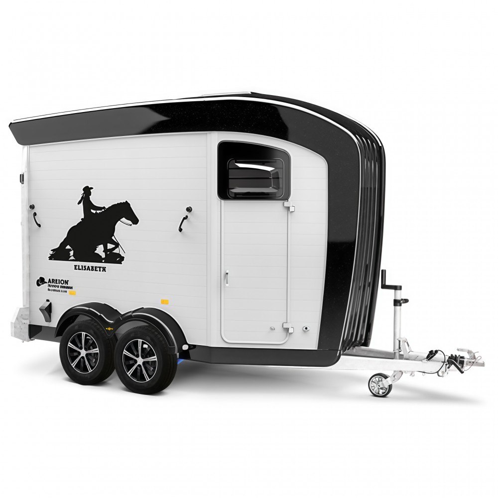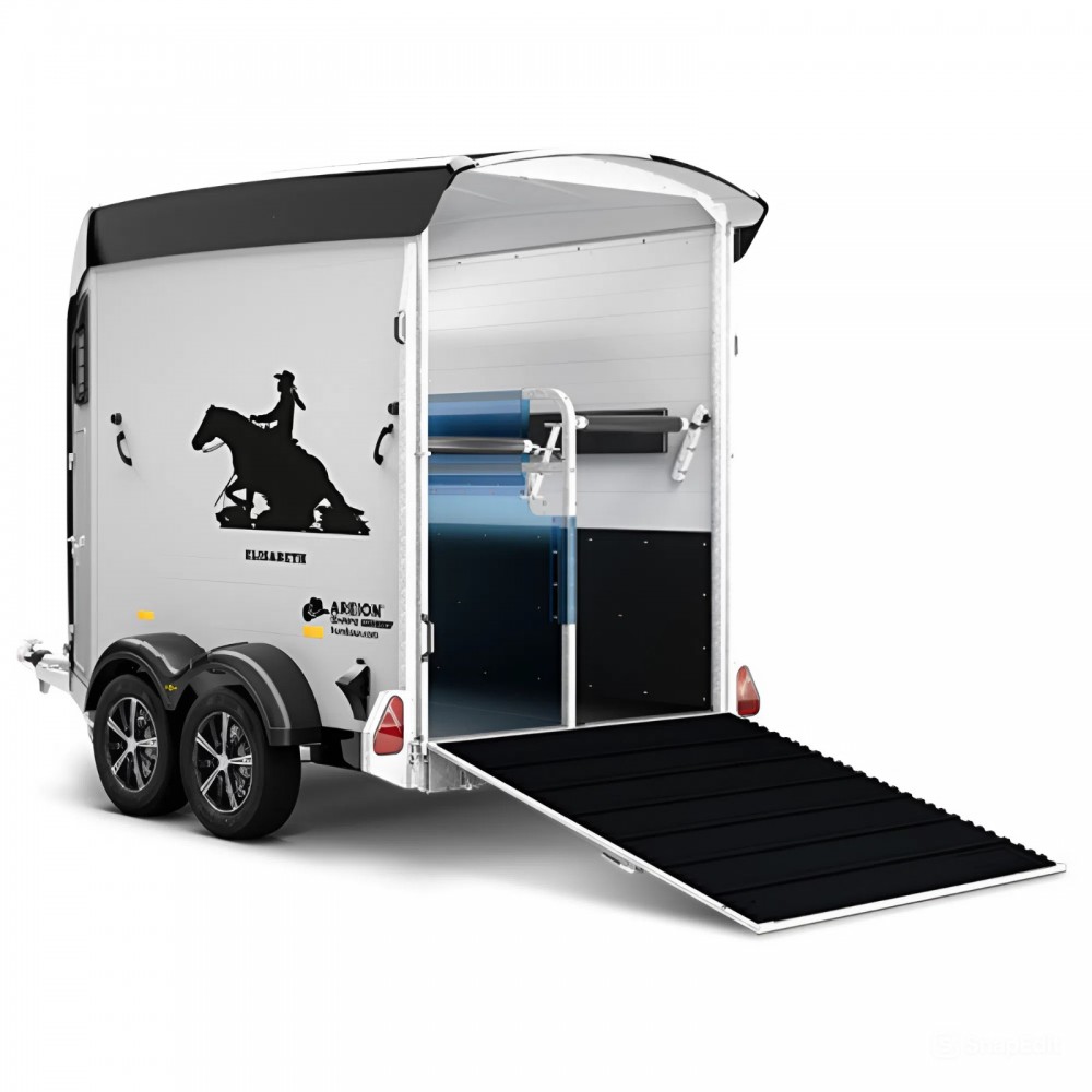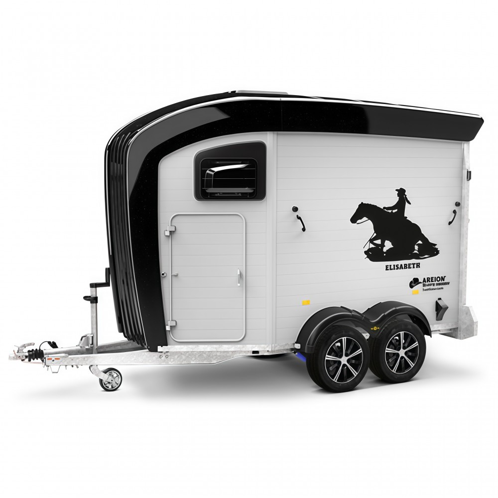 Це двовісний алюмінієвий причіп з частковим верхнім обтічником Areion Shape. Завдяки аеродинамічній конструкції, просторому інтер’єру та продуманому оснащенню, він забезпечує комфортне транспортування коней у західному стилі.